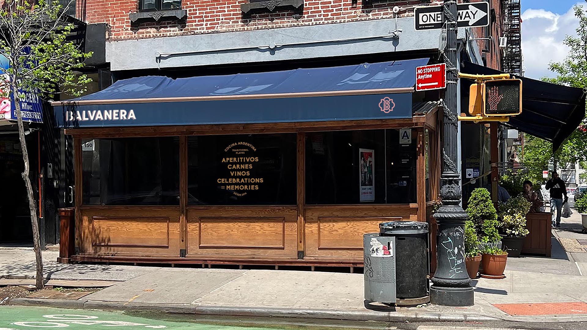 Se trata del primer restaurante de Balvanera. Se intervinieron elementos existentes como la cartelera y se agregaron vinilos dorados en los cristales para reforzar la identidad visual.
