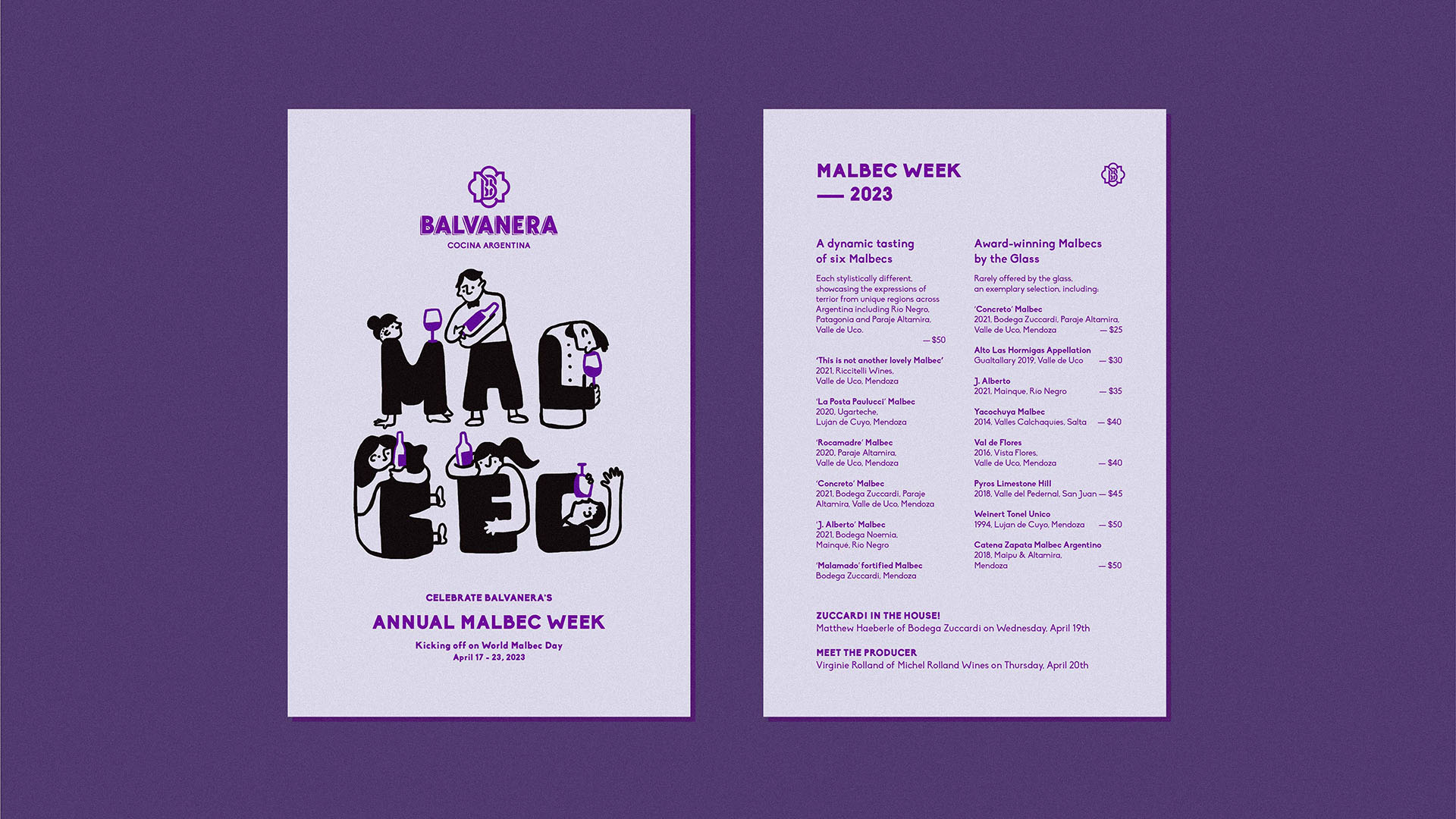 In May 2022, I was asked by chef Fernando Navas to rebrand Balvanera and develop a brand strategy for its expansion. The project included the opening of a new location in Pittsburgh. The objective was to unify the identity of both spaces, transmitting the essence of Buenos Aires: the intensity, the tradition, the community and the daily spirit of Buenos Aires. In addition, we sought to reflect its spontaneous encounters, unexpected toasts and the inevitable Argentine wine. Therefore, we worked from a strategic point of view that allowed us to consolidate the brand in both markets without losing authenticity.