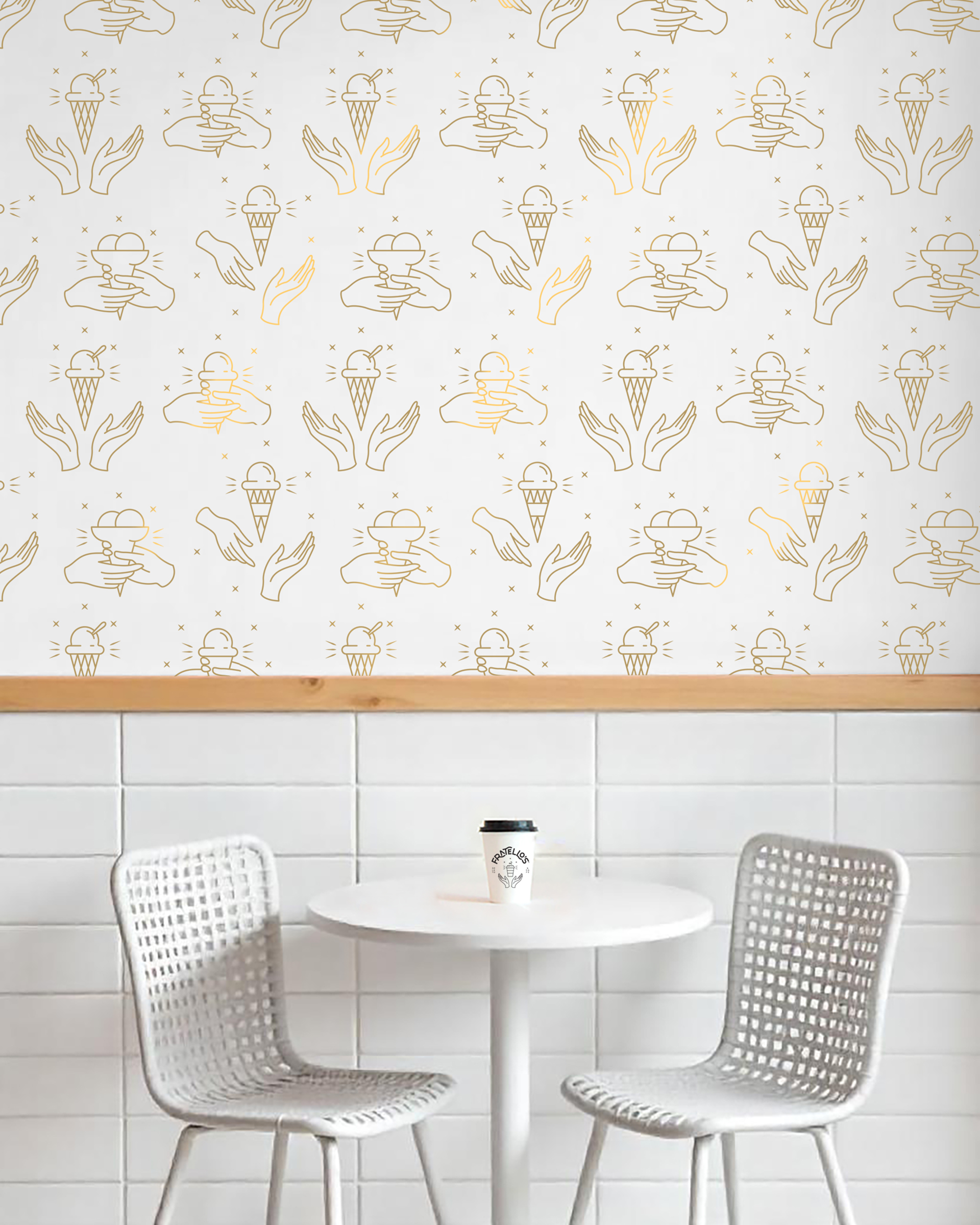 A partir de esta premisa, se tomaron elementos gráficos y compositivos característicos de los escudos de logias, buscando transmitir una sensación de pertenencia, identidad y mística. El resultado es la creación de un escudo propio que representa los valores de fraternidad, calidez y comunidad que definen a la heladería y cafetería.
