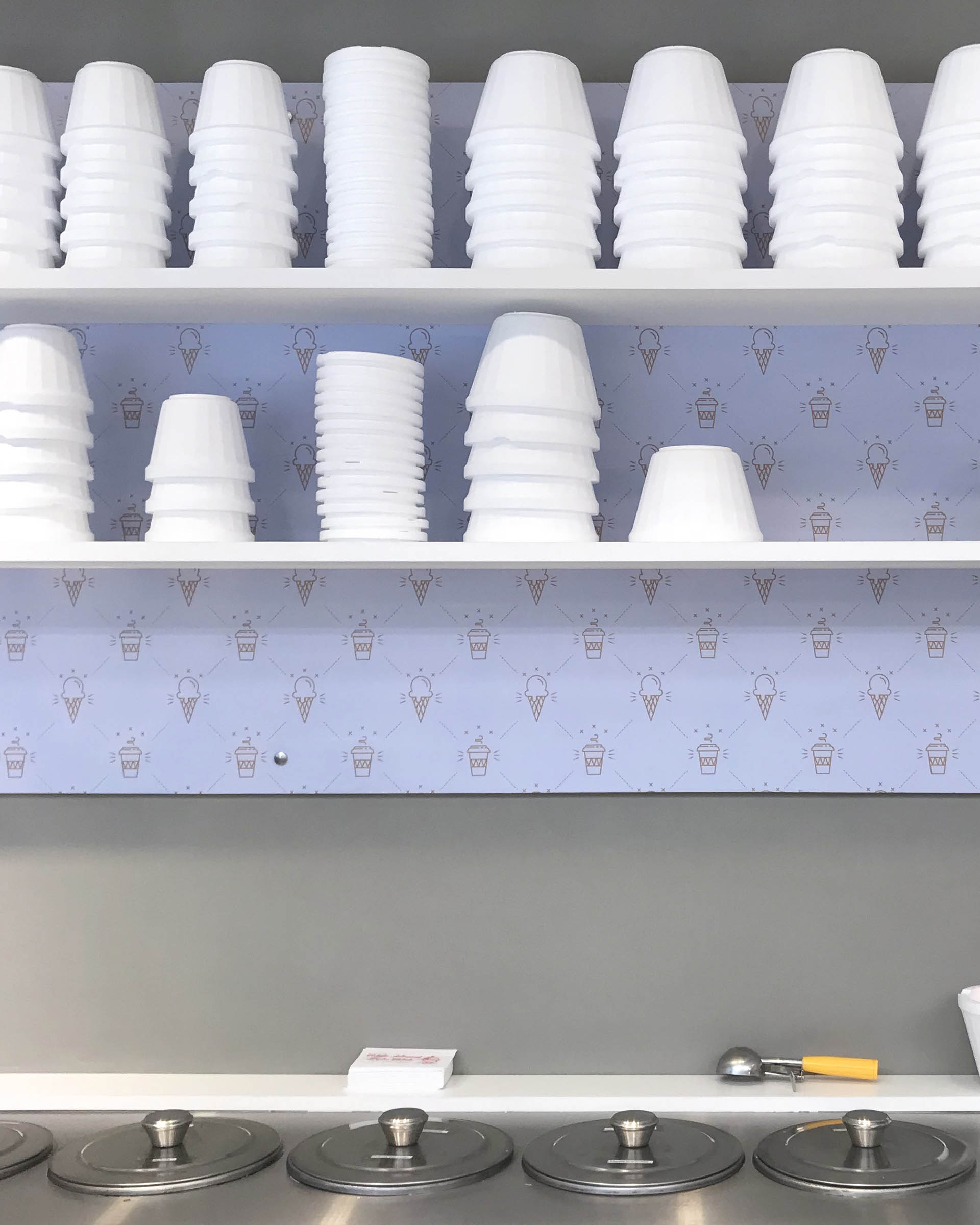 Based on this premise, graphic and compositional elements characteristic of the coats of arms of lodges were taken, seeking to convey a sense of belonging, identity and mystique. The result is the creation of a shield that represents the values of fraternity, warmth and community that define the ice cream parlor and cafeteria.