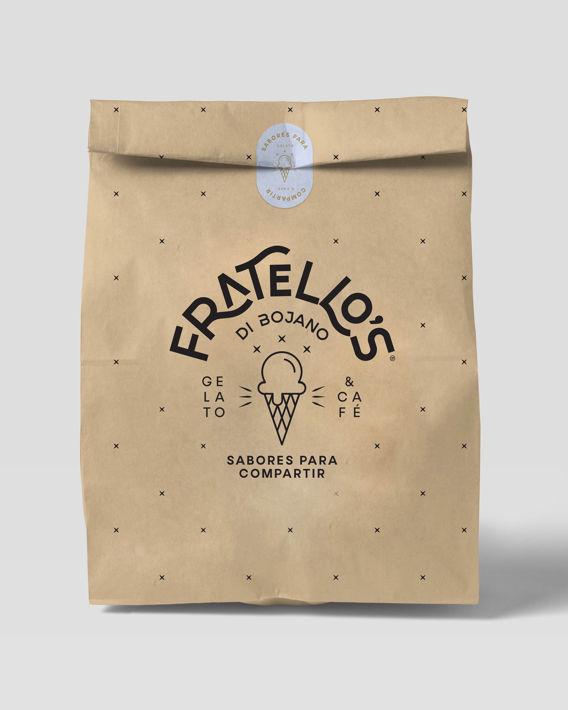 We developed the graphic identity for Fratello’s Di Bojano, a restaurant located in Villa Ballester, Buenos Aires, Argentina. Specializing in handmade ice cream and coffee, they offer healthy and natural products, designed for those who value authentic flavor and personal care.