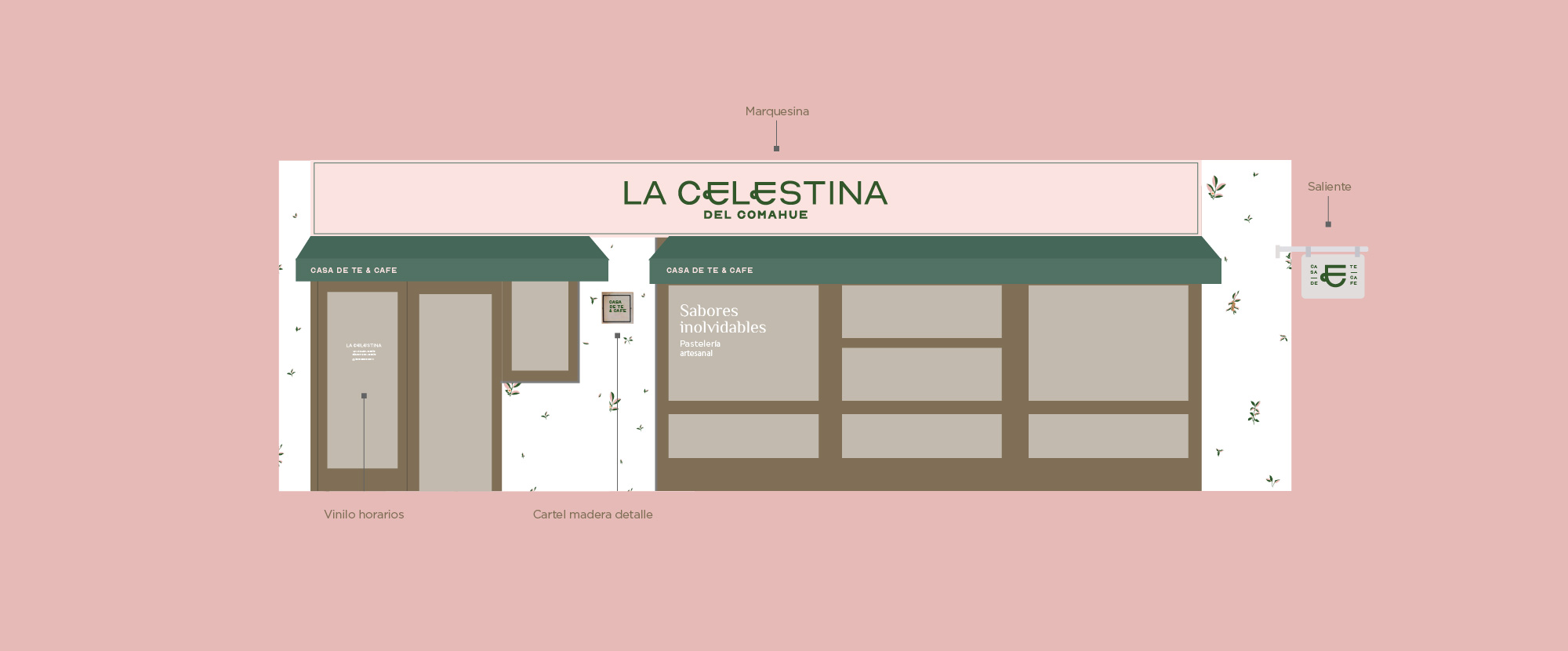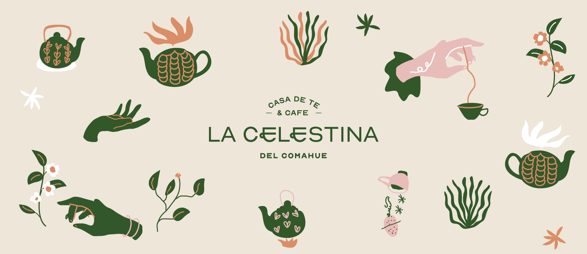 I was called by María José Marini to develop the identity of La Celestina del Comahue, a tea house and café located in Viedma, Río Negro. The project celebrated the Welsh tea service and the value of the local, creating a unique experience for residents and tourists. Thus, the brand was built from the sensory, the warm and the close.