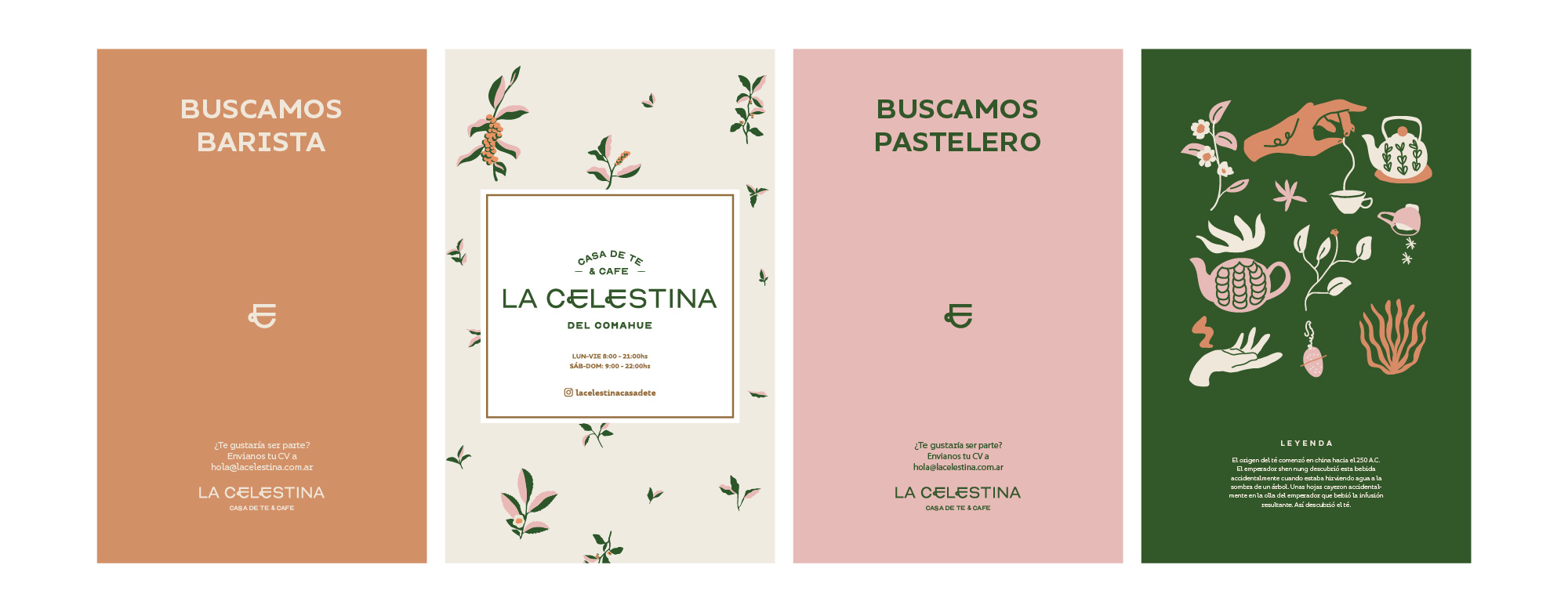 Fui convocada por María José Marini para desarrollar la identidad de La Celestina del Comahue, una casa de té y café ubicada en Viedma, Río Negro. El proyecto celebró el servicio de té galés y el valor de lo local, creando una experiencia única para residentes y turistas. Así, la marca se construyó desde lo sensorial, lo cálido y lo cercano.
